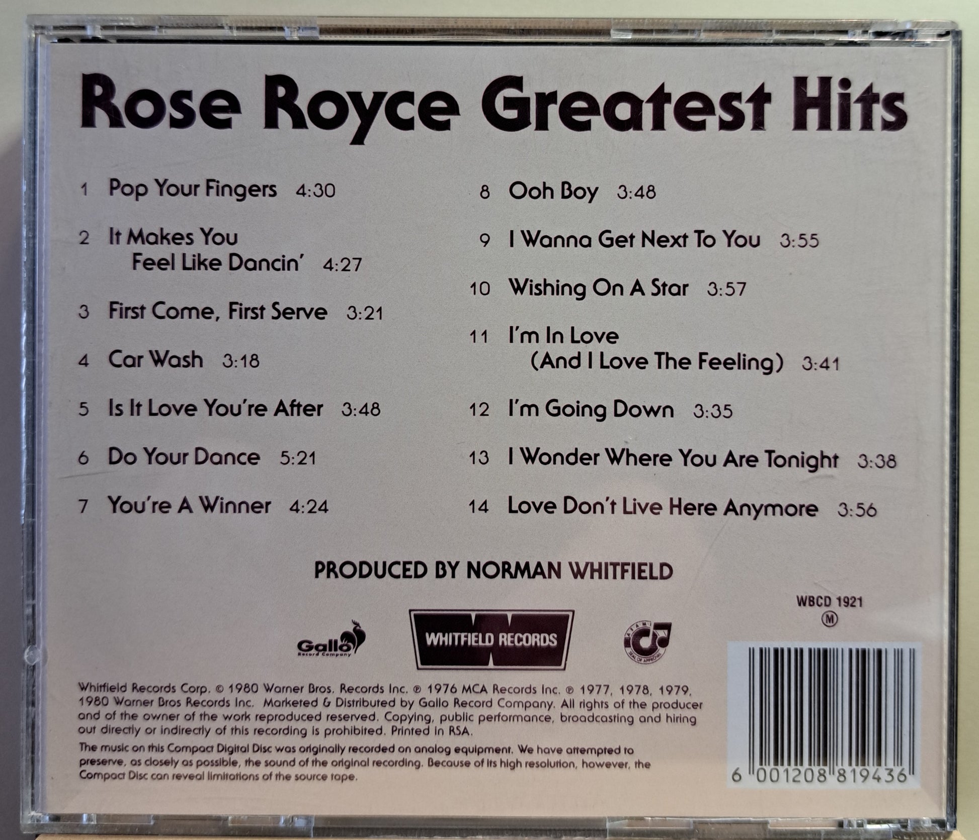 WBCD1921 Compilation released in 1980 (South African issue)
